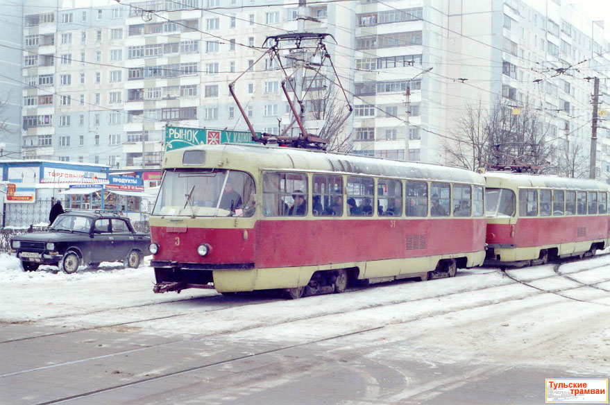 Поезд из вагонов "Татра" Т-3 номер 3 и 4 (депо N 1) на улице Епифанской.