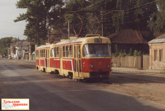 Сцепка вагонов Т-3 номер 32 и 31 (депо N 1) на ул. Оборонной.