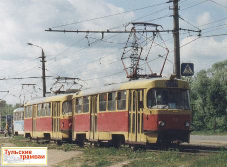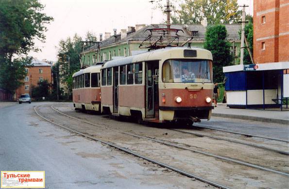 Сцепка вагонов "Татра" Т-3 номер 49 и 50 (депо N 1) на остановке "Ул. Михеева"
