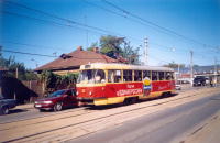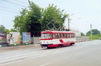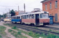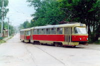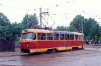 | "Татра" Т-3 Год поступления: 1974. Год выпуска: 1974. Заводской номер: 1627?? Работа в поездах: 57+58 Работа в челноках: 57+63 (2003 г.) |