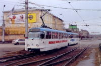 | "Татра" Т-3D Год поступления: 2005. Предыдущие номера: 107 (г. Шверин, Германия) Год перенумерации: 2005. Последующие номера: 77 Год выпуска: 1976. Заводской номер: 165589 Работа в поездах: 75+76 | ||