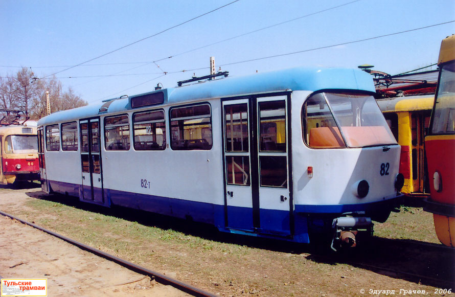 | Вагон № 82. 1932 (1936) - до 1969 г.: тип "М" 1975-1994: "Татра" Т-3 октябрь 2005 - по настоящее время: "Татра" Т-3D |