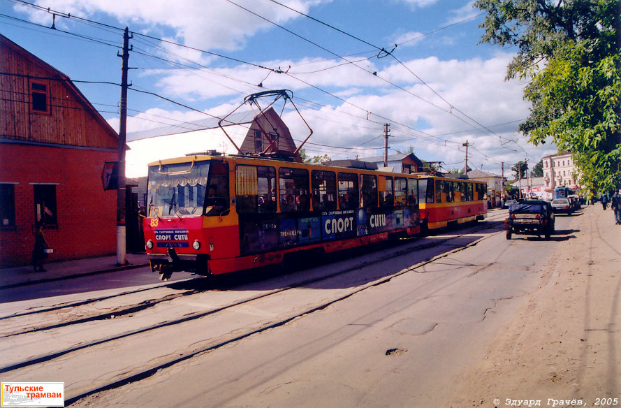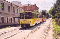 | Поезд из вагонов "Татра" Т6Б5 номер 83 и 84 (депо N 1) на улице Оборонной. Дата съемки: 3 июня 2005 года. Фотография: Э. Грачев |