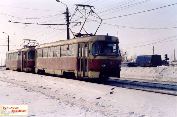 Поезд из вагонов "Татра" Т-3 номер 103 и 104 (депо N 1) на проспекте Ленина.