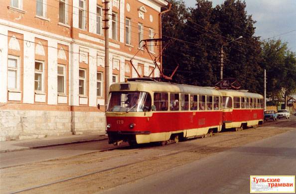 Поезд из вагонов "Татра" Т-3 номер 120 и 121 (депо N 1) на ул. Оборонной.