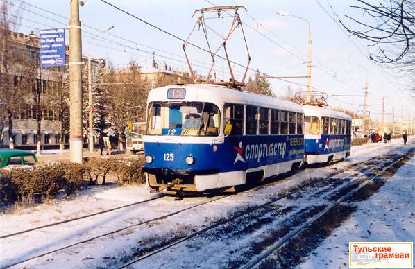 Поезд из вагонов "Татра" Т-3 номер 125 и 124 (депо N 1) на проспекте Ленина.