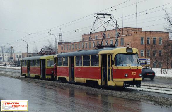 | Поезд из вагонов "Татра" Т-3 номер 203 и 206 (депо N 2) на ост. "Водоканал".