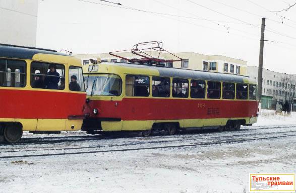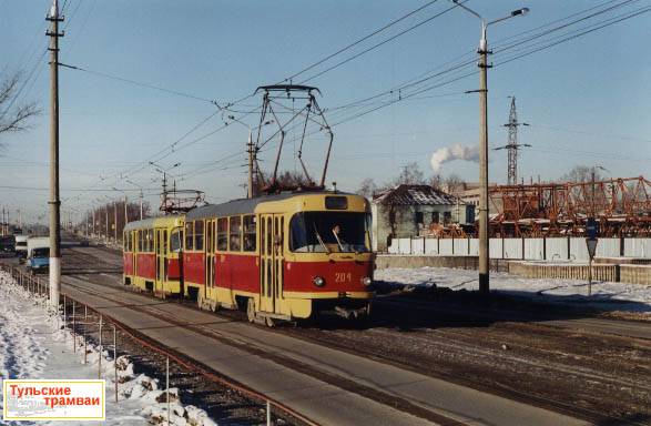 | Поезд из вагонов "Татра" Т-3 номер 204 и 205 (депо N 2) на ул. Демидовская Плотина.