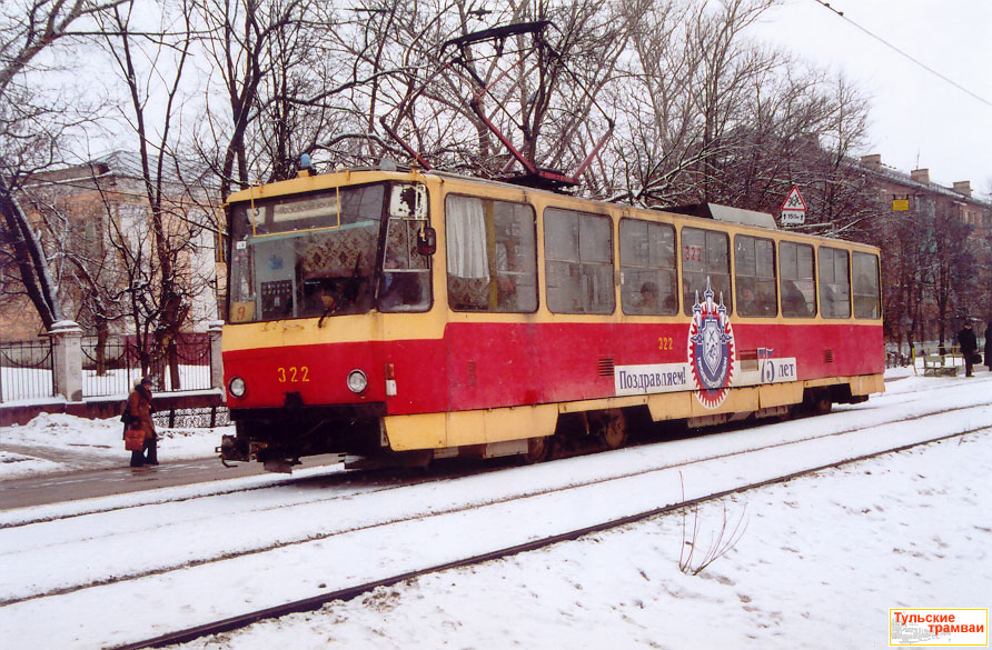 | Вагон № 322. 1968 - 1983 г.г.: "Татра" Т-3 1989 - по настоящее время: "Татра" Т6Б5 |