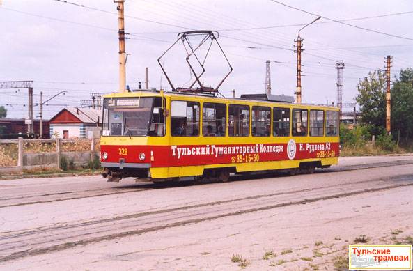 | Поезд из вагонов "Татра" Т6B5 номер 328 и 329 (депо N 2) на ост. "Ул. Кутузова".