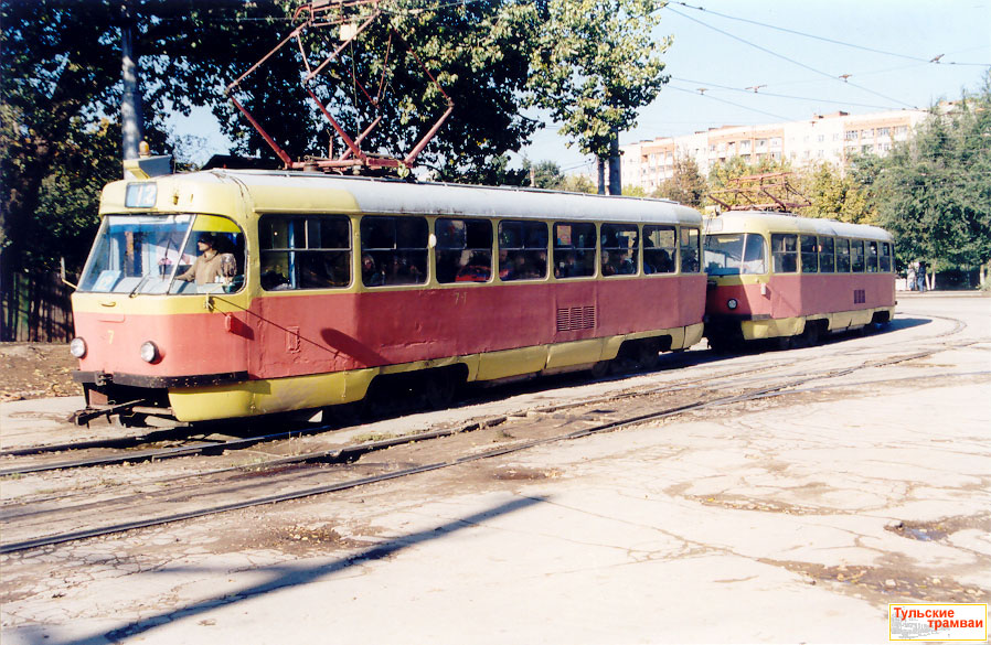 | Поезд из вагонов "Татра" Т-3 номер 7 и 8 (депо N 1) на улице Кауля. Дата съемки: 24 сентября 2002 года. Фотография: Э. Грачев |