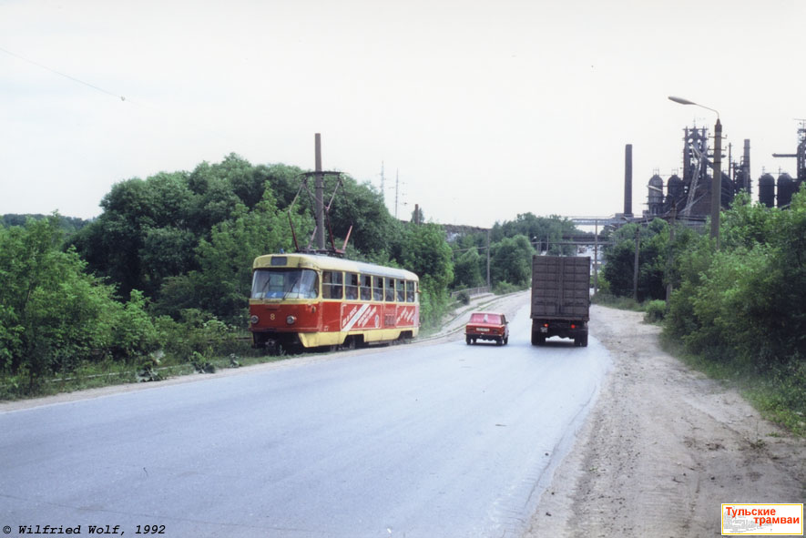 | Вагон "Татра" Т-3 номер 8 (депо N 1) на улице Шоссейной (пос. Ивановский Дачи). Дата съемки: 3 июля 1992 года. Фотография: Wilfried Wolf (Leipzig) из коллекции Ааре Оландера (Эстония) |