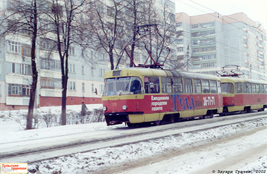 Поезд из вагонов "Татра" Т-3 номер 15 и 16 (депо N 1) на улице Епифанской.