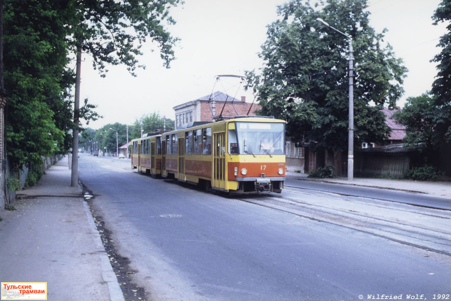 Поезд из вагонов "Татра" Т6Б5 номер 17 и 18 (депо N 1) на улице Оборонной.