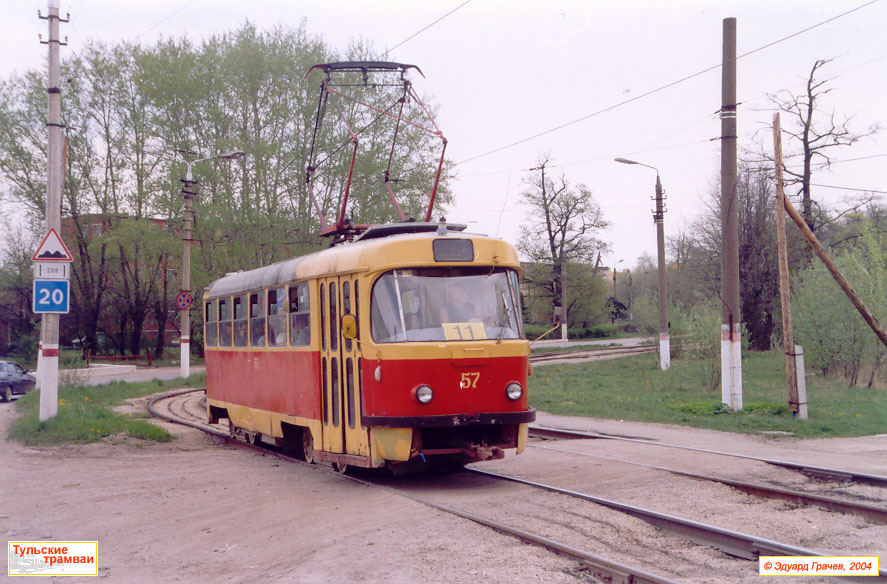 | Вагон "Татра" Т-3 номер 57 (депо № 1) на улице Щегловская Засека Дата съемки: 7 мая 2004 года. Фотография: Э. Грачев |