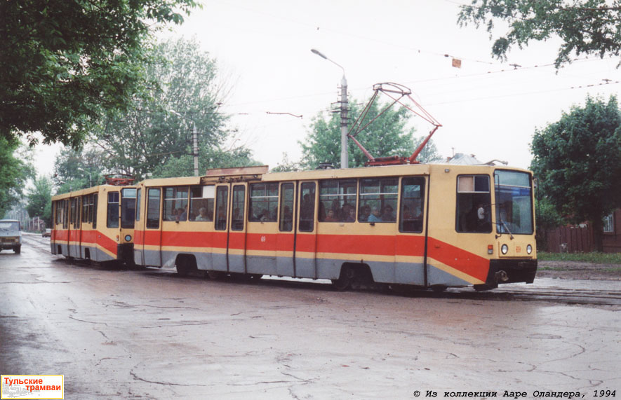| Поезд из вагонов КТМ-8 номер 69 и 70 (депо N 1) на улице Кауля. Дата съемки: 08 июня 1994 года. Фотография: из коллеции Ааре Оландера (Эстония) |