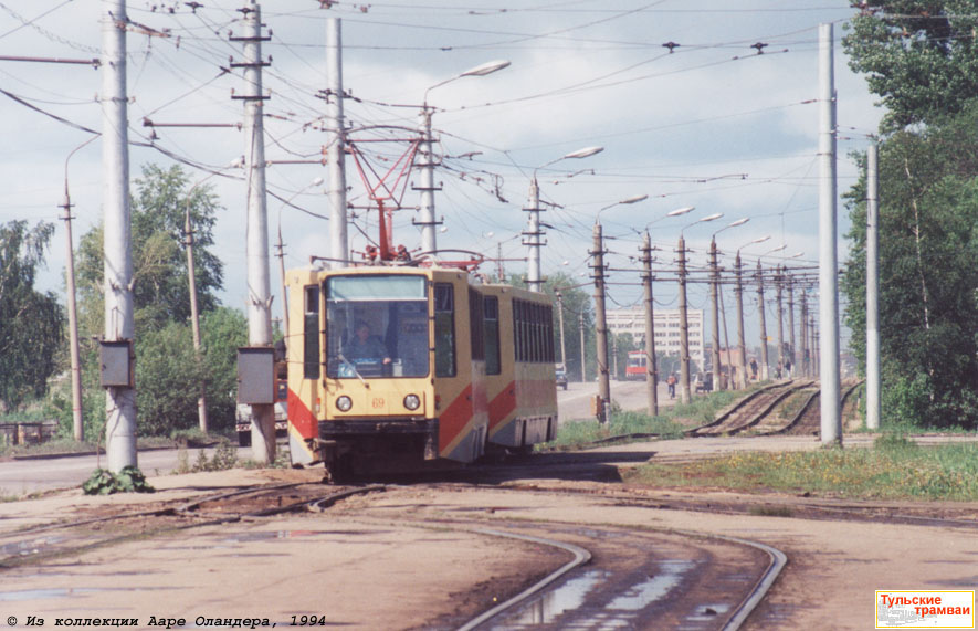| Поезд из вагонов КТМ-8 номер 69 и 70 (депо N 1) на проспекте Ленина. Дата съемки: 08 июня 1994 года. Фотография: из коллеции Ааре Оландера (Эстония) |