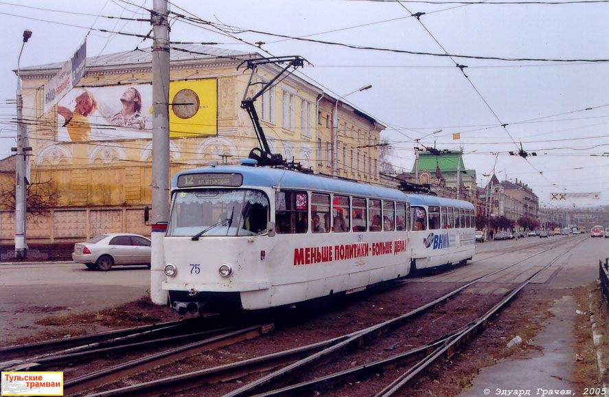 Поезд из вагонов "Татра" Т-3D номер 75 и 76 (депо N 1) на улице Советской