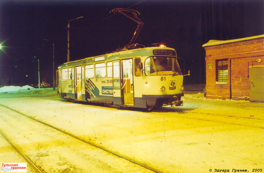 | Вагон "Татра" Т-3DC номер 81 (депо N 1) на линейной станции "Щегловская Засека". Дата съемки: 23 декабря 2005 года. Фотография: Э. Грачев |