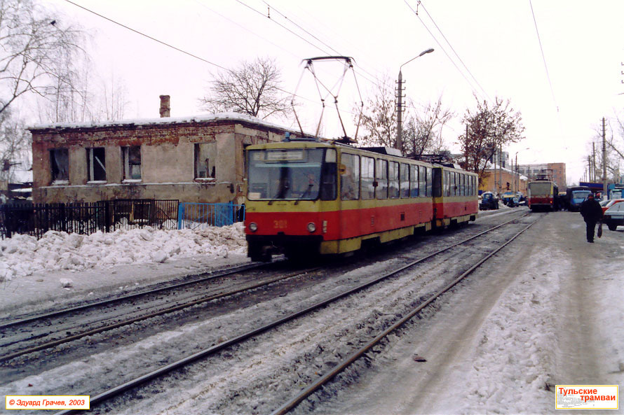 | Поезд из вагонов "Татра" Т6Б5 номер 301 и 300 на улице Коминтерна Дата съемки: 22 января 2003 года. Фотография: Э. Грачев |