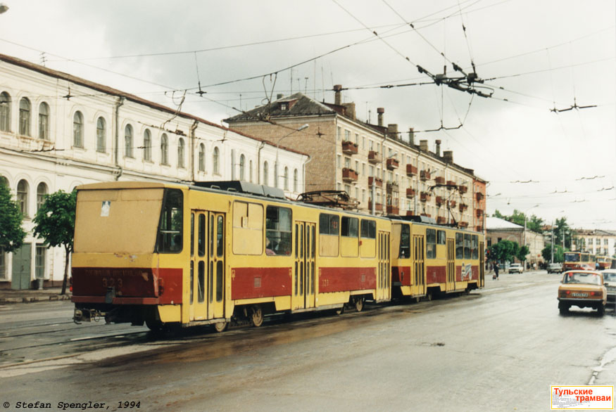 | Поезд из вагонов "Татра" Т6Б5 номер 322 и 323 (депо N 2) на улице Советской. Дата съемки: 8 июня 1994 года. Фотография: Stefan Spengler (Leipzig) из коллекции Ааре Оландера (Эстония) |