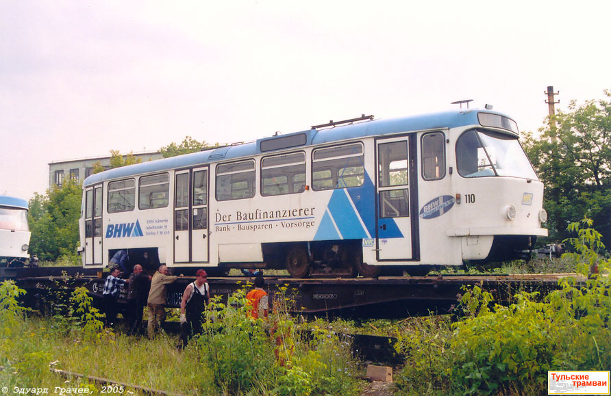 | Вагон "Татра" Т-3D номер 110 (Шверин, Германия) на станции Тула-1-Курская. Дата съемки: 23 июля 2005 года. Фотография: Эдуард Грачев |
