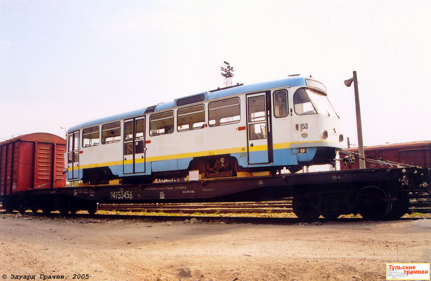 | Вагон "Татра" Т-3D номер 153 (Шверин, Германия) на станции Тула-1-Курская. Дата съемки: 13 сентября 2005 года. Фотография: Эдуард Грачев |